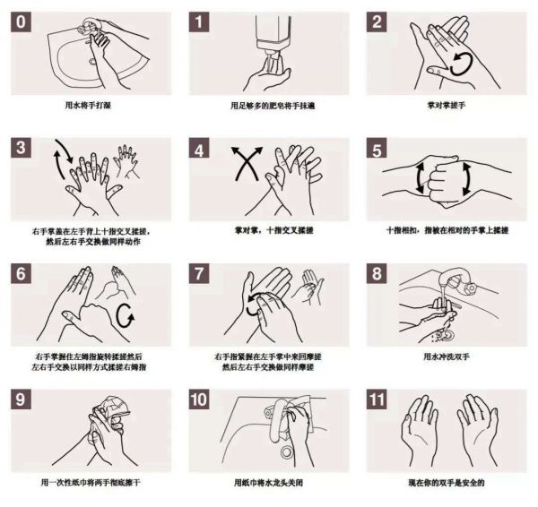 正確洗手有講究,有5步洗手法、7步洗手法,世界衛生組織將前后準備工作以及沖洗步驟納入后,還總結出一套11步洗手法(如下圖)。怕麻煩的市民記住其中精華7步即可(可對應下圖2~7):