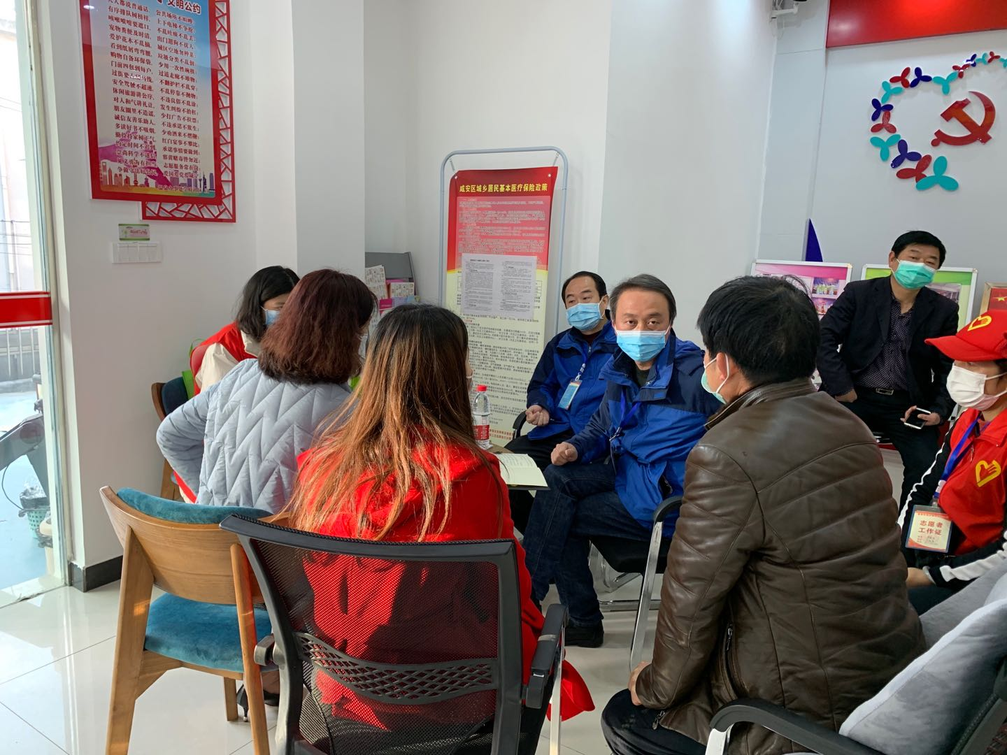 圖為扶貧辦選派的第一書記紀魯義在包保的萬年路社區魚池巷小區防控值守點現場召開黨支部會議,協商解決居民反映下水道堵塞問...