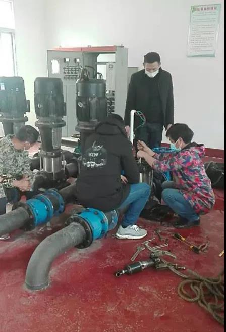 松滋市民生水務公司緊急搶修楊林寺供水泵。(通訊員 供圖)