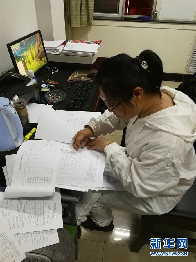 2月11日,李娟在山西省朔州市疾病預防控制中心辦公室登記核酸檢測結果。新華社發