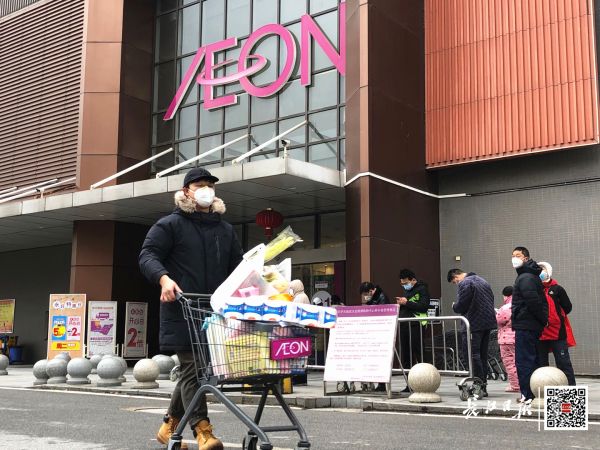 東西湖區(qū)金銀潭大道旁一家大型超市門(mén)外,市民自覺(jué)大間隔排隊(duì)有序入場(chǎng)購(gòu)物 長(zhǎng)江日?qǐng)?bào)記者劉斌 攝