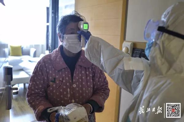 武漢市江岸區(qū)某醫(yī)學(xué)隔離觀察點(diǎn),醫(yī)護(hù)人員每天早晚為被隔離人測(cè)體溫 長(zhǎng)江日?qǐng)?bào)記者胡冬冬 攝