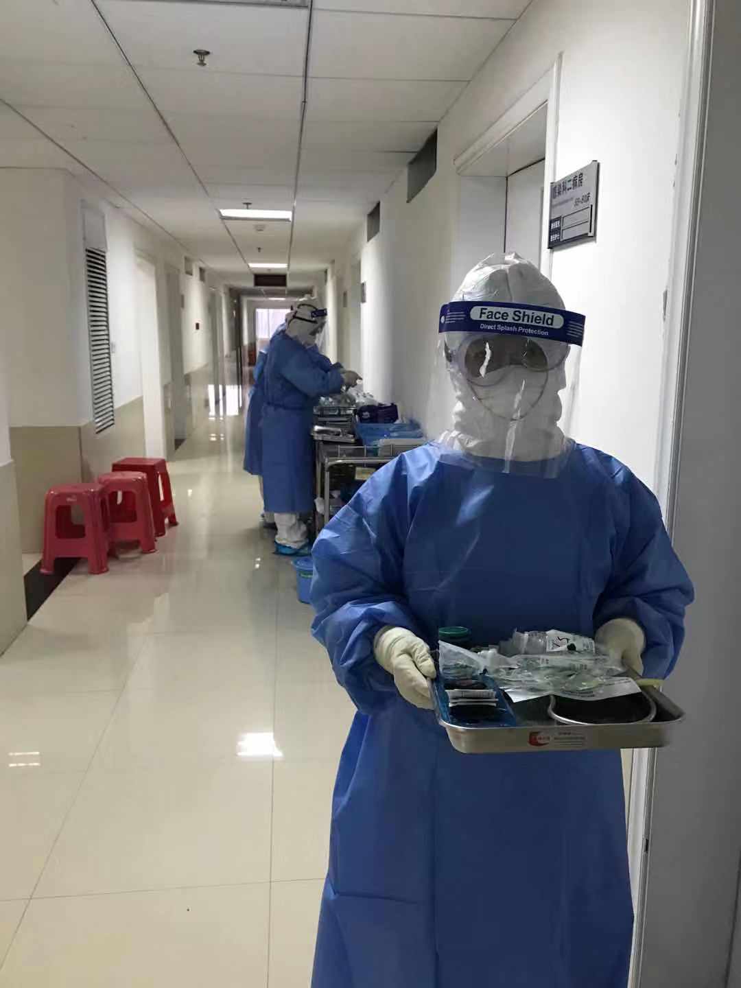 崇陽縣醫院感染科護士長葉紅在接受記者電話采訪時說,每天一進隔離病房,就要穿戴防護服、口罩、N95口罩、防護面罩,我們水都不敢喝,怕上廁所,因為上廁所就要脫防護服,現在防護用品很緊張。一天下來,全身都是汗。