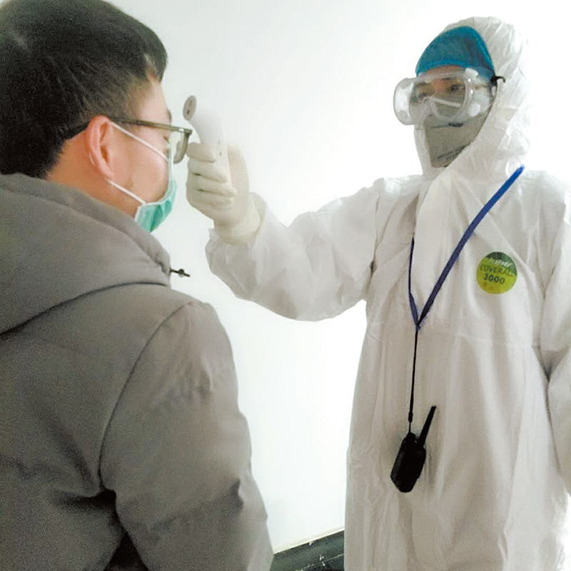 “要去給他們送午飯、測體溫?!蓖踯S芬說,隔離人員體征監(jiān)測、飲食等都由她們負責,為了節(jié)約防護物資,一般同時進行。