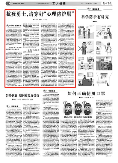 首頁 >> 專題報道 >> 2020專題 >> 眾志成城 堅決打贏新型肺炎疫情防控阻擊戰 >> 防控措施 >> 正文■洪建國 崔展宇 羅微全 疫情期間,一線的醫護人員既要救治大量患者,自身也面臨被感染的風險,加上長時間待在病房、身穿厚重密封的防護服、不能與家人經常聯系、面對病人的痛苦和生死等,多種應激源的交織,容易使他們出現不良心理應激反應。日前,我們邀請解放軍總醫院第五醫學中心肝病心理門診專家、國家二級心理咨詢師李琳,東部戰區聯勤心理危機干預中心副主任、軍隊支援武漢醫療隊員李光耀,談一談一線醫護人員應如何進行心理調適,做好心理健康自助。 一線醫護人員救援期間常見的應激反應 急性應激反應:往往發生于平時正常的個體突然遇到應激事件,或其環境突然發生巨大變化。精神狀態表現為焦慮狀態、抑郁狀態或恐懼狀態,往往伴有定向問題、身體不適、睡眠障礙等情況。 急性應激障礙:是在受到嚴重的精神刺激后,幾分鐘或幾小時內出現的一過性的精神恍惚、茫然或暈倒、表情麻木等。數天或1周內可緩解。 創傷后應激反應:指個體經歷、目睹或遭遇到一個或多個危及自身或他人生命,或嚴重受傷、或軀體完整性受到威脅后,所導致的個體持續存在或延遲出現的精神障礙。主要表現有三類癥狀:一是重新體驗,表現為頭腦里不自主地閃現與創傷有關的情境或內容,甚至感覺創傷性事件好像再次發生一樣。二是回避和麻木,主要表現為長期回避與創傷有關的事件或情境,回避創傷的地點或有關的人和事。有些患者甚至出現選擇性遺忘,不能回憶起與創傷有關的事件細節。三是警覺性增高,主要表現為過度警覺、容易被驚嚇,伴有注意力不集中、激惹性增高及焦慮情緒。 醫護人員出現以下情況,可能已經疲勞過度,或者經歷創傷應激反應,需要及時疏導不良情緒、減緩壓力,預防心理創傷及應激障礙。 生理反應:胃疼或腹瀉、頭疼或其他身體疼痛、胃口不好或吃的太多、發汗或發冷、顫抖或肌肉抽搐、容易受到驚嚇。 情緒反應:感到焦慮、憤怒,或感到狂喜、所向無敵,無所謂或不在乎,感到壓倒性的悲傷。 認知反應:記憶力下降、感到困惑、難以集中精力、難以清晰思考、難以做出決定。 行為反應:增加或減少活動和能量;易激惹、易發火、易爭吵;無法放松或入睡;容易哭泣、過度擔憂;只想一個人待著;抱怨都是別人的錯,聽不進去別人的意見,無法溝通;不想給予幫助或接受幫助;無法感受到快樂和享受樂趣。 一線醫護人員如何進行心理調適 認知調整,樹立堅定信念。醫學不是萬能的,接受不完美和失敗是醫護人員應該保持的客觀認知。醫護人員應該學會接納自己的工作能力和表現,避免過度苛責自己,專注于做好眼前的每一個醫療動作。只要盡最大努力去救治患者,無論成功與失敗,都應該坦然面對,保持心態平和。 合理安排工作、保證充足的休息和營養。限制工作時間,減少超負荷工作;定期轉換工作崗位,由高應激崗位轉換到低應激崗位。保持生活作息規律,盡量按時吃飯。抓住點滴時間進行休息和放松,不要被其他事情干擾。如果有失眠癥狀,可適當應用助眠藥物,調整睡眠節律。合理調整情緒,工作時間以外,盡量做些自己喜歡的事。 接納應激情緒,適當宣泄。面對危機事件時,出現負面情緒是正常的,要允許自己出現負面情緒,并表達和疏泄出來。當自己出現應激情緒反應時,可將情緒命名,如悲傷、恐懼、焦慮、不安等,然后選擇傾訴、運動、聽音樂、哭泣等合適的渠道和方式表達出來。這些減壓方式可以增強體質、促進多巴胺的分泌,提升自信等正面、積極的情緒,同時減少精神上的緊張、沮喪、失望、擔憂、害怕等不良情緒的產生。當出現恐懼情緒時,可以向信任的同事、朋友、家人說出自己的恐懼,或把恐懼寫下來,獲得心理壓力的釋放。還可以把自己的恐懼轉化為做好個人防護的動力,這樣恐懼感會慢慢減輕。當出現憤怒、焦躁的情緒時,可以找機會聊點工作以外的事情,比如聊追過的電視劇或者以前的精彩旅行,幫助自己轉移注意力。還要會自我關懷,可以在便利貼上寫下三件今天發生的、讓自己平靜或快樂的事,然后把它貼在顯眼的位置,感到沮喪時看看它。 友善互助的社會支持。醫護人員要主動尋求緩解不良情緒的途徑,保持與外界的交流,獲得心理支持。如果時間允許,下班后可以通過與親友打電話、微信視頻等方式交流,談談自己最近的感受,同時給家人科普新型肺炎相關的知識。同事間可以討論和分享近期的經驗感受,相互扶持。親密友好的互助氛圍,既能化解緊張的情緒,也能提高心理免疫力。 調節壓力、改善情緒。疫情時期,醫護人員面臨著多重壓力,精神高度緊張,情緒不穩定。以下訓練可以幫助醫護人員舒緩神經、調節壓力、改善情緒。 著陸技術:通過檢查自己的觸感、環境,將注意力轉移到當下,從情緒漩渦中回歸此時此地。 1.身體著陸:可以用溫水或冷水洗手;握著一個物體,感受它的溫度和觸感;感受雙腳與地面的接觸,用力張開握緊的拳頭,感受手指末端的感覺。 2.精神著陸:環顧四周的物體,快速、無聲地報出它們是什么;想象你的痛苦是一個視頻,而你可以按下關閉鍵。 3.自我撫慰的著陸:想象能讓你安心的人、事、地點,或者想一想你期待的事情。 深呼吸放松:先找到一個舒服的姿勢,坐著或躺著。采用腹