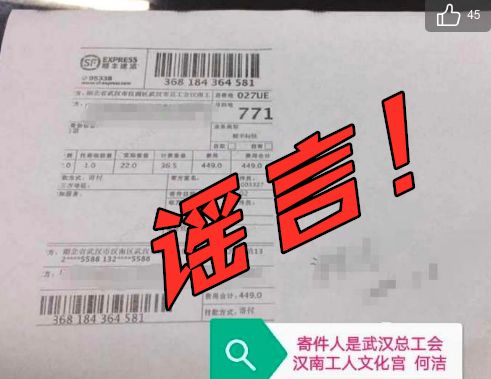 2月14日,有熱心網友在微博爆料,質疑他們網上購買的口罩發貨單上注明是武漢市總工會漢南工人文化宮,他們在網上賣口罩?