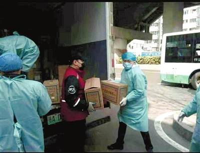 1月24日一大早,郭毅就和同事們集中清理物資,核對清單無誤后,大家輪番接力,將物質穩妥地運上貨車?!耙欢?,加油!”郭毅喊著口號,和同事配合,將一大箱消毒口罩抬上后備箱。像這樣的動作,他一個上午要重復好多遍。雖然冬季天氣寒冷,郭毅卻渾身冒汗。