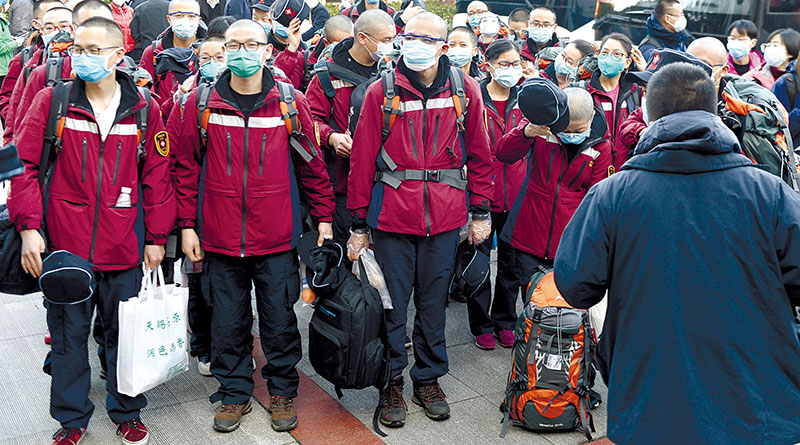 “我們是來(lái)自云南省第一人民醫(yī)院的醫(yī)療隊(duì),共有31人。出征咸寧前,男的都剃了光頭,女的都剪掉長(zhǎng)發(fā)……”醫(yī)療隊(duì)負(fù)責(zé)人、醫(yī)院應(yīng)急辦主任李波告訴記者,由于防護(hù)服穿脫不便,剪短頭發(fā)既能節(jié)省打理時(shí)間,也能減少病菌吸附,降低感染風(fēng)險(xiǎn)。