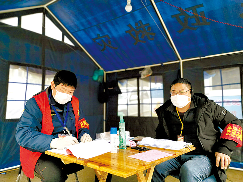 當天晚上降溫,謝靜作為該執勤點臨時黨支部書記和大組長來看望在一線執勤的戰友,提醒他們注意保暖,同時幫助增強執勤力量。