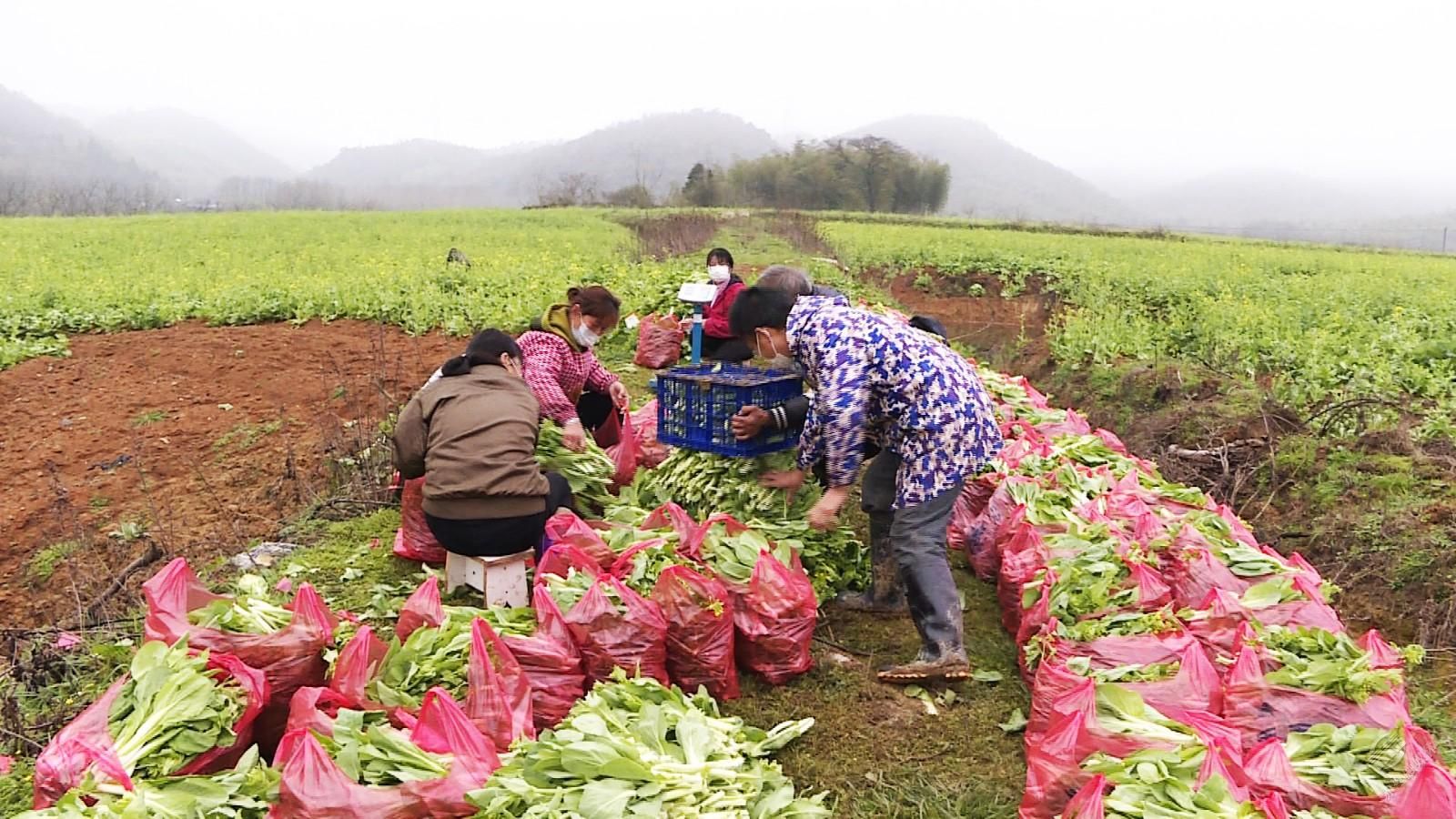 此時,余俊義的菜地里,剛剛采摘的2000斤白菜薹正在準備裝車,運往赤壁市區(qū)銷售。