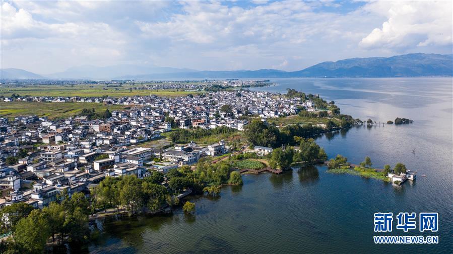 這是9月3日拍攝的云南省大理市古生村村貌與洱海風光(無人機照片)。新華社記者 胡超 攝