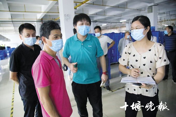 中央媒體記者在青龍泉社區(qū)襪業(yè)車間采訪。