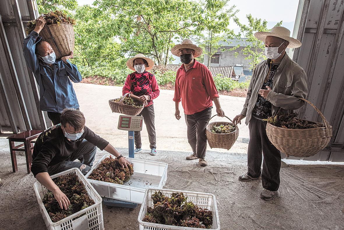 農戶們將種植的香椿芽拿到合作社等待收購。