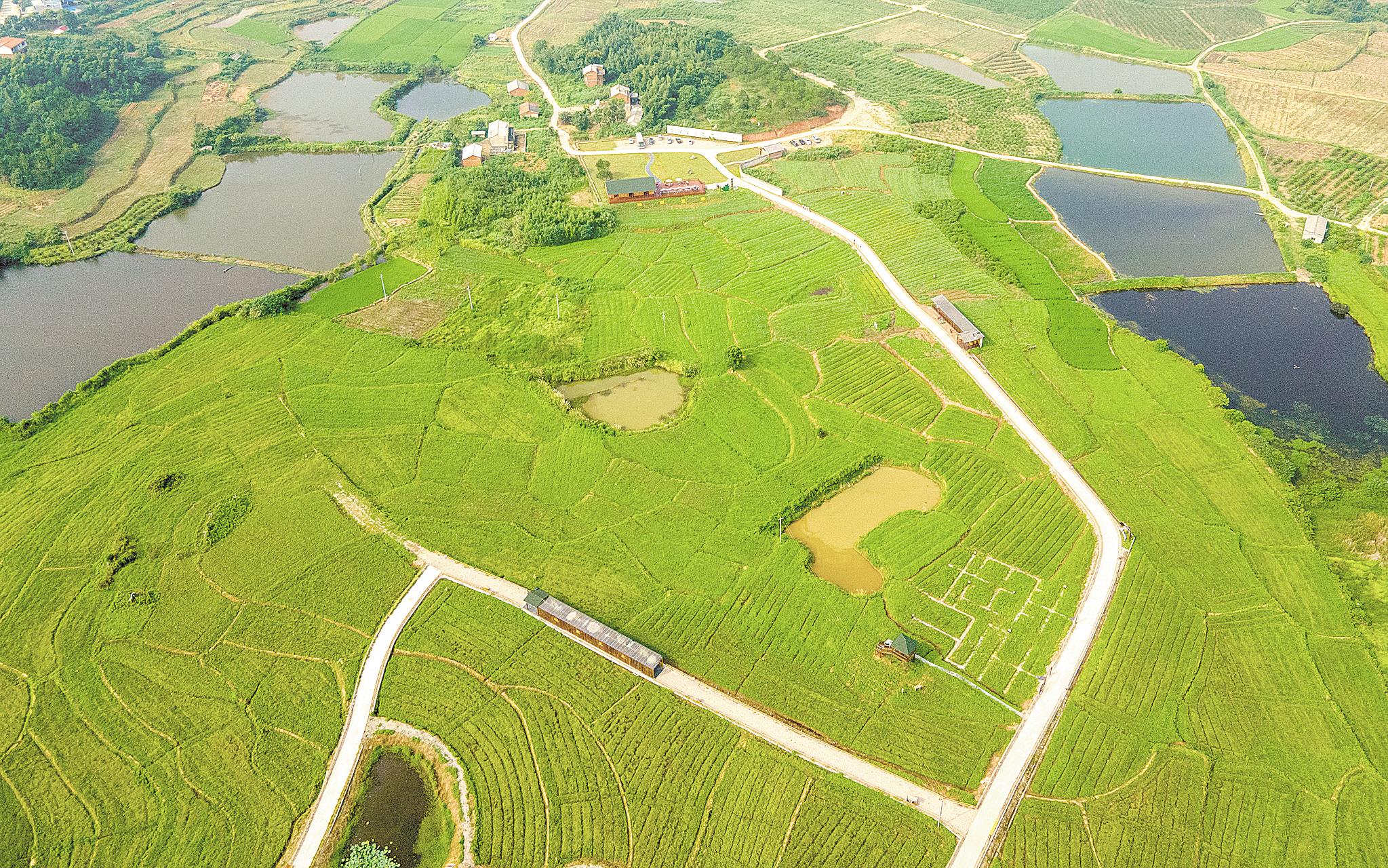 8月25日,蘄春縣赤東鎮五斗地村的“神蘄艾谷”千畝蘄艾基地鳥瞰。