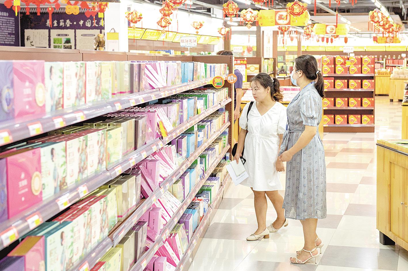 8月25日,位于蘄春縣創業大道的李時珍蘄艾精品超市,顧客選購蘄艾產品。