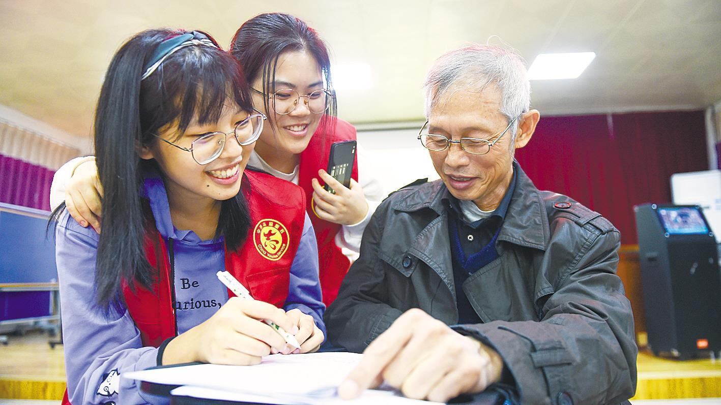 10月14日,武漢大學外語學院的志愿者們來到武昌區徐東路社區,教社區老人們唱英文歌。老人說,跟孩子們一起玩,快樂極了。 ? ?(湖北日報全媒記者 何宇欣 通訊員 鐘麗芳 肖郭芳 攝)
