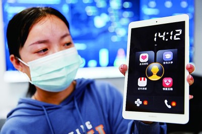 社區居家養老服務中心工作人員展示居家養老服務的相關程序。新華社發