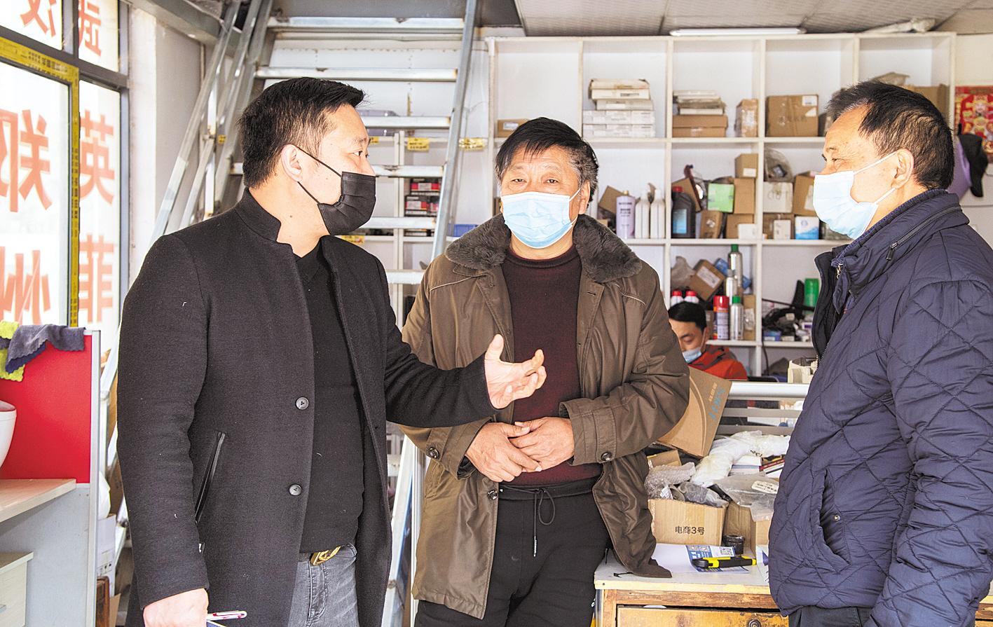 陳詩炎(左一)和汽配商戶交流。