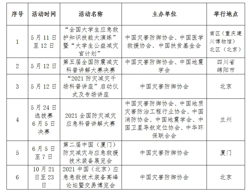 應急管理部發布2021年全國防災減災宣傳周活動安排