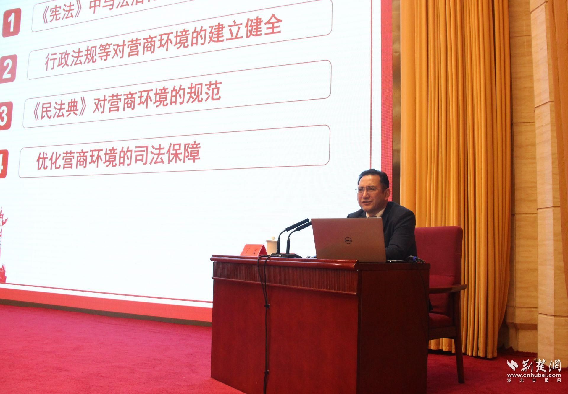 講座上,丁文教授以“憲法進企業 營造法治化營商環境”為主題,從《憲法》中與法治化營商環境、法律制定對營商環境的影響、《中華人民共和國民法典》對營商環境的規范、優化營商環境的司法保障四個方面,對憲法進企業的必要性做了專題輔導。