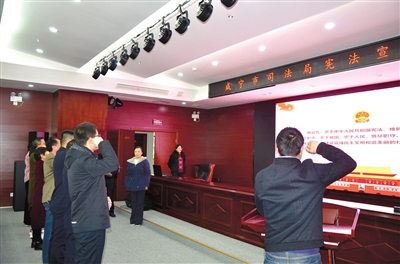今年憲法宣傳周期間,咸寧市直30余家單位開(kāi)展憲法宣誓活動(dòng),500余名國(guó)家工作人員進(jìn)行憲法宣誓。