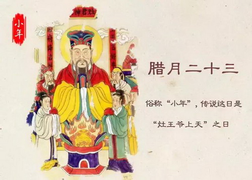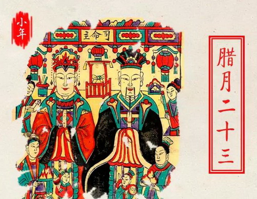 舊時(shí),差不多家家灶間都設(shè)有“灶王爺”神位。人們稱這尊神為“司命菩薩”或“灶君司命”,傳說他是玉皇大帝封的“九天東廚司命灶王府君”,負(fù)責(zé)管理各家的灶火,被作為一家的保護(hù)神而受到崇拜。灶王龕大都設(shè)在灶房的北面或東面,中間供上灶王爺?shù)纳裣瘛]有灶王龕的人家,也有將神像直接貼在墻上的。有的神像只畫灶王爺一人,有的則有男女兩人,女神被稱為“灶王奶奶”。這大概是模仿人間夫婦的形象。灶王爺像上大都還印有這一年的日歷,上書“東廚司命主”、“人間監(jiān)察神”、“一家之主”等文字,以表明灶神的地位。兩旁貼上“上天言好事,下界保平安”的對(duì)聯(lián),以保佑全家老小的平安。