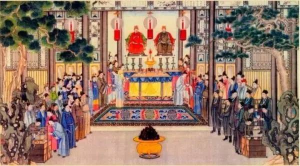 在《紅樓夢(mèng)》第53回和54回,曹雪芹用大量篇幅描寫了賈府過年的祭祖儀式:“……里邊香燭輝煌,錦幛繡幕,雖列著神主,卻看不真切。只見賈府人分昭穆排班立定:賈敬主祭,賈赦陪祭,賈珍獻(xiàn)爵,賈璉賈琮獻(xiàn)帛,寶玉捧香……”