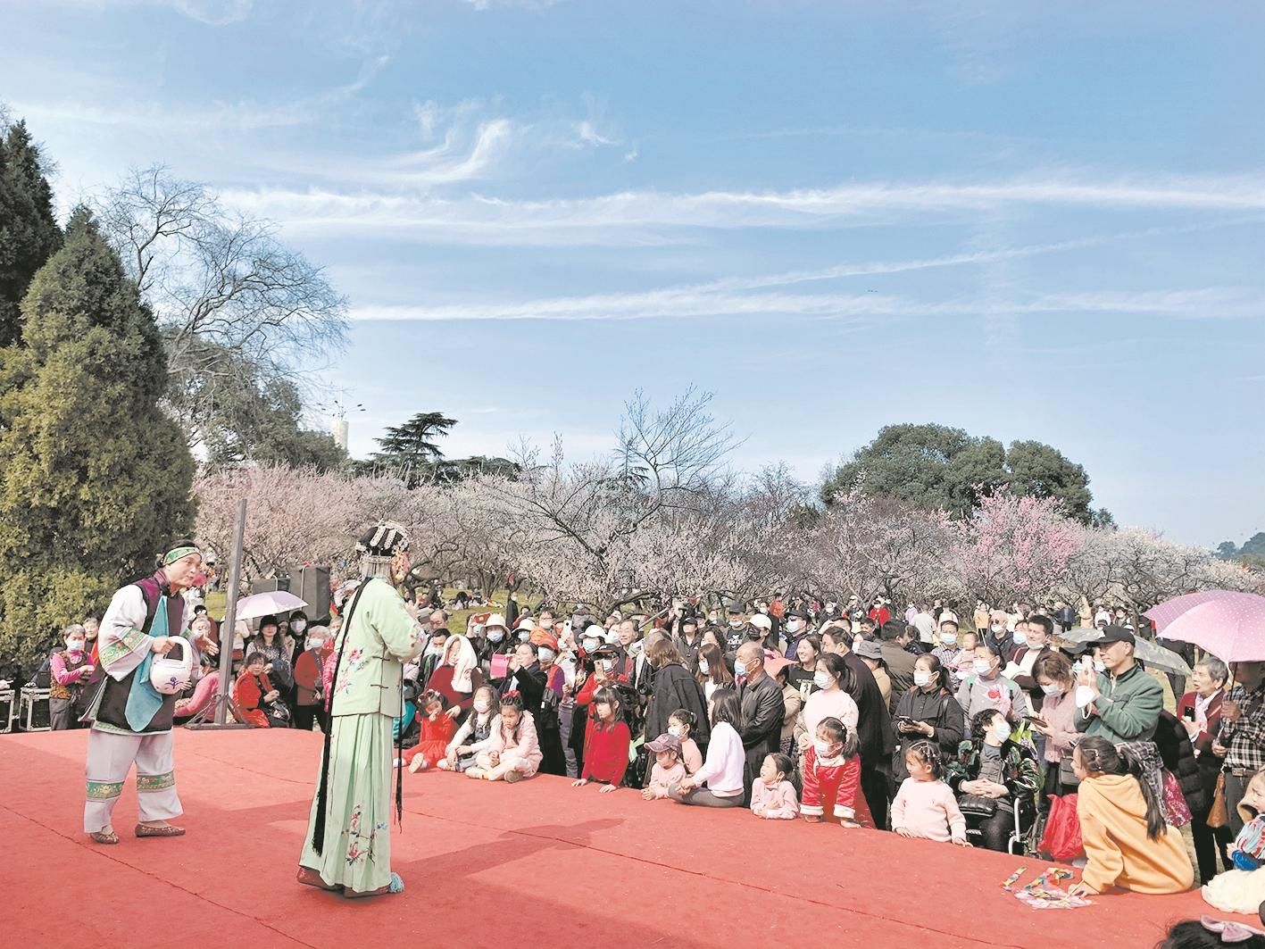 2月18日,武漢楚劇院也曾帶著這兩出經典折子戲走進東湖梅園,讓遠道而來的游客及本地市民在滿園春色中享受湖北鄉音、本土戲曲的獨特魅力。