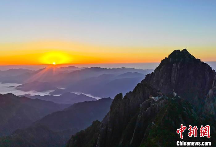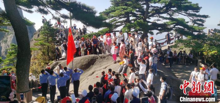 (祖國頌·同升一面旗)國慶假期首日:游客黃山之巔升國旗唱國歌