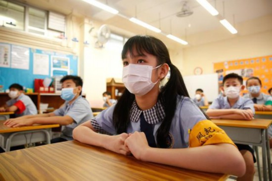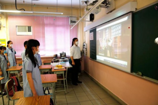 9月30日,香港鮮魚行學校的學生在上國情教育課。新華社記者 劉展威 攝