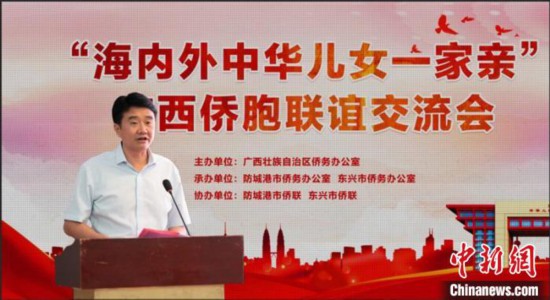 防城港市委常委、統(tǒng)戰(zhàn)部部長黎家迎在聯(lián)誼交流會上致辭 廣西統(tǒng)戰(zhàn)部供圖