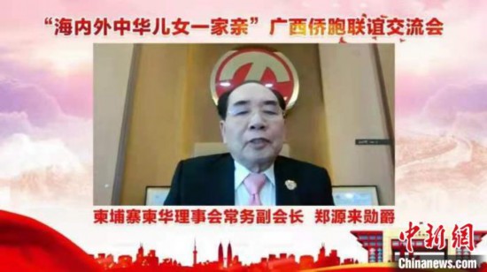 圖為僑領(lǐng)代表通過視頻致辭 廣西統(tǒng)戰(zhàn)部供圖
