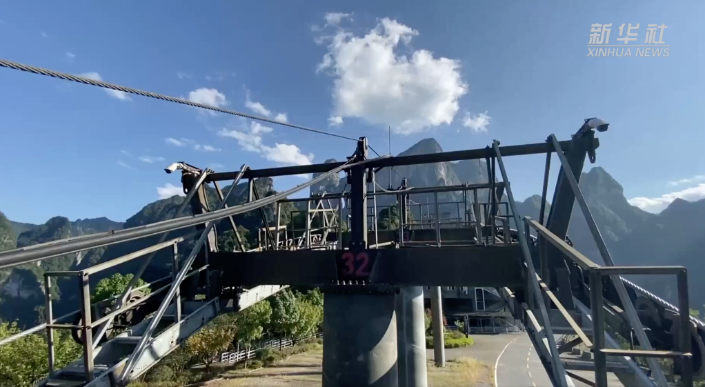 49歲的韓曉偉是張家界天門山景區索道檢修工中的一員,從事索道檢修工作已有8年。