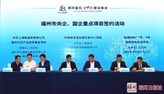 26日,第四屆數(shù)字中國建設(shè)峰會福州市數(shù)字經(jīng)濟(jì)重大項(xiàng)目集中簽約儀式舉行。省委常委、市委書記林寶金,市長尤猛軍,國家部委有關(guān)單位、在閩金融機(jī)構(gòu)和央企等負(fù)責(zé)人,市有關(guān)領(lǐng)導(dǎo)出席活動,并共同見證簽約。