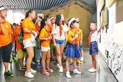 撫順市雷鋒紀念館小志愿者講解員為參觀者講解?圖片由撫順市雷鋒紀念館提供