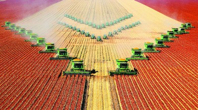 黑龍江墾區秋收大機械作業。圖片由北大荒集團黨委工作部提供