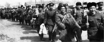 1958年4月12日,東方剛放亮,密山火車站人山人海,熙熙攘攘,到處是鮮血浸染過的行李和黃軍裝,10萬復轉官兵挺進北大荒。王震將軍發出號召:“永不放下槍,好漢建設北大荒!”