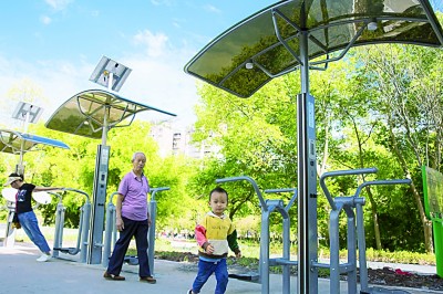 在云陽縣濱江公園“兩江四岸”智慧健身長廊,市民一邊欣賞美景一邊健身。資料圖片