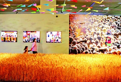 由中國文聯、國家博物館和中國攝協聯合主辦的《希望的田野——脫貧攻堅?共享小康全國攝影展》4月9日在國家博物館開幕。圖為一對母女正在觀展。燕翔攝/光明圖片