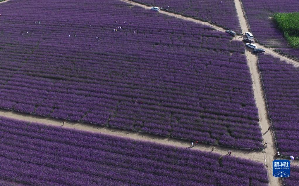 游人在延安南泥灣賞花游覽(2020年8月19日攝,無人機照片)。新華社發(祁小軍 攝)