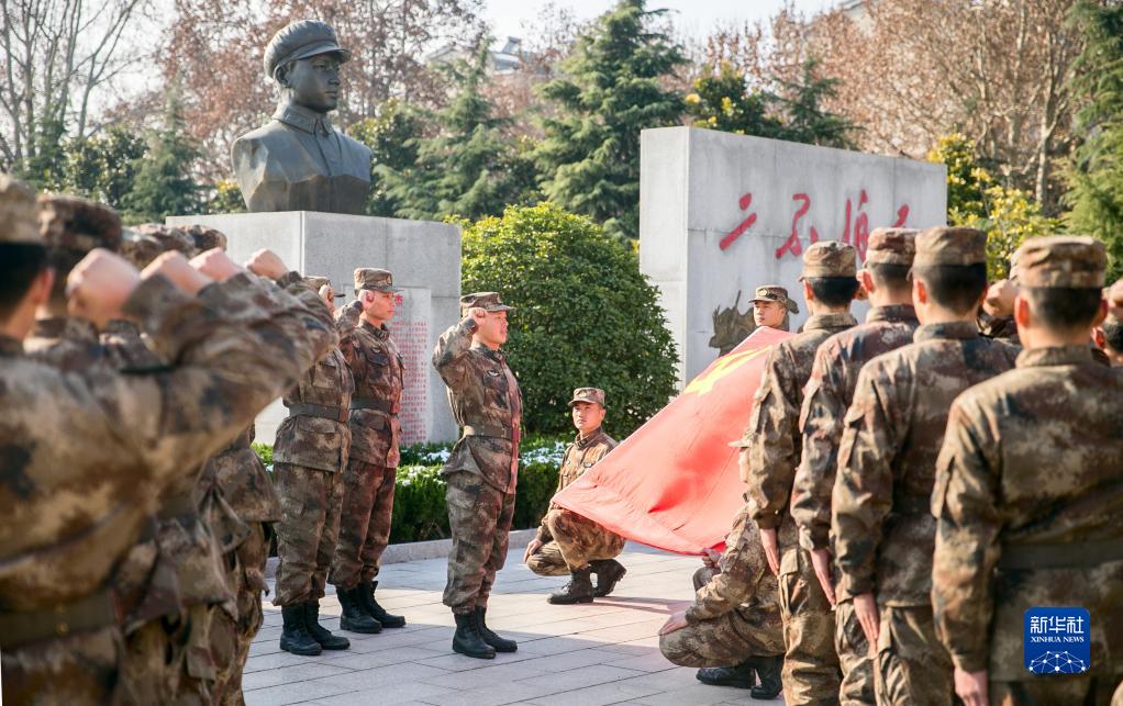 陸軍第71集團軍某合成旅王杰生前所在連官兵組織黨員重溫入黨誓詞(2018年12月14日攝)。新華社發(fā)(白俊峰 攝)