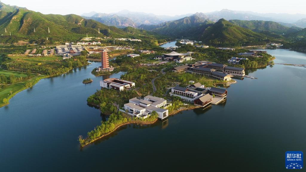 “一帶一路”國際合作高峰論壇于2017年5月14日至15日在北京舉行,懷柔雁棲湖國際會議中心是此次高峰論壇的主會場。這是雁棲湖(2017年5月6日攝,無人機(jī)照片)。新華社記者 李鑫 攝