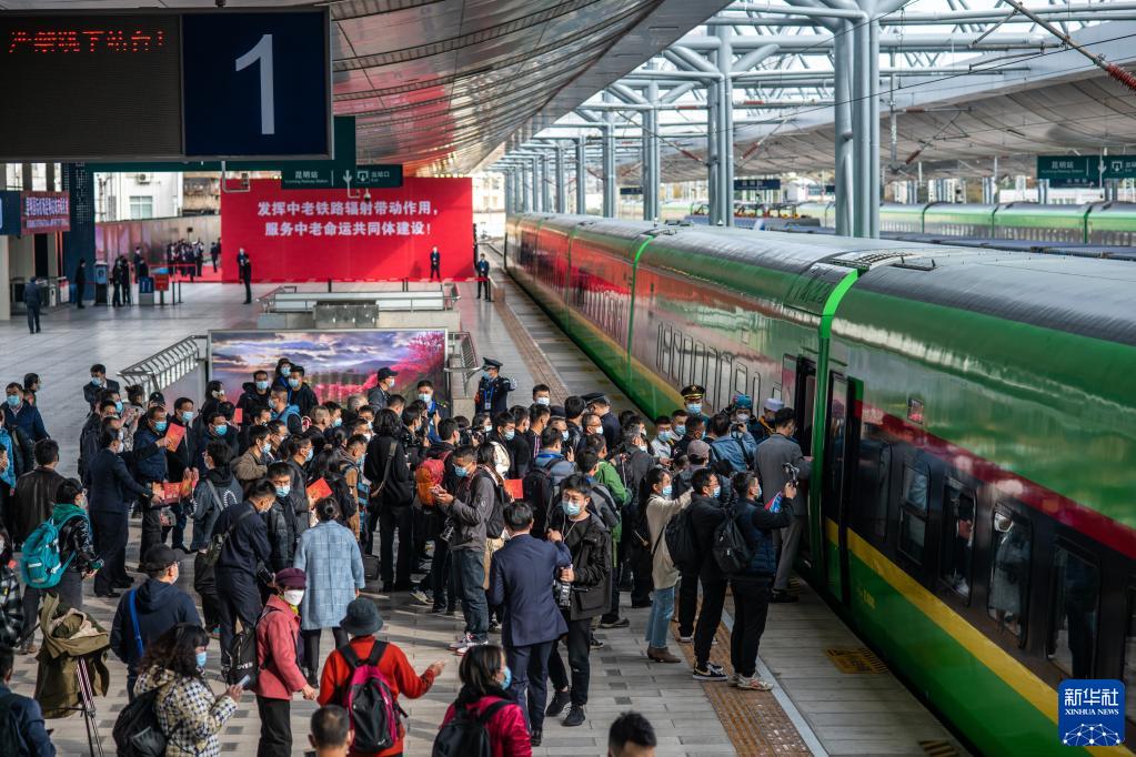 12月3日,乘客在中國昆明站準(zhǔn)備搭乘中老鐵路首發(fā)列車。新華社記者 胡超 攝