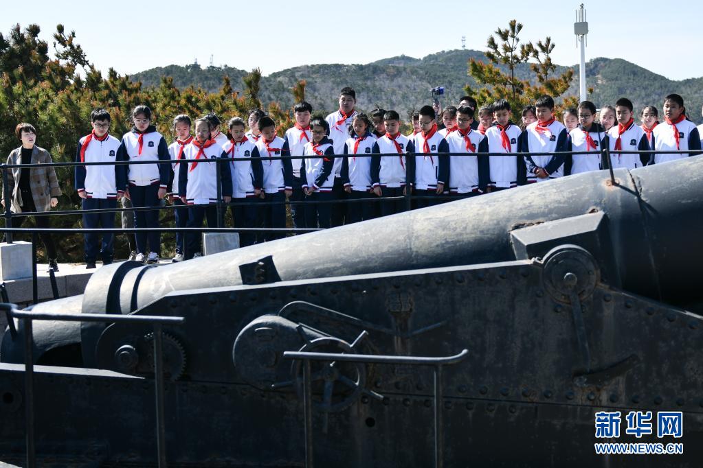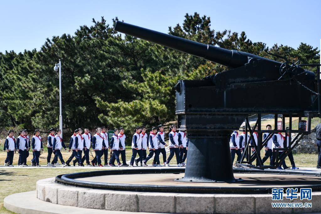 4月13日,學生在總體國家安全觀劉公島教育培訓基地參觀東泓炮臺舊址。