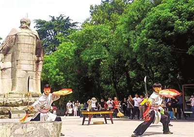 赤壁市文化和旅游局組織“紅色文藝輕騎兵”小分隊進景區演出,富有赤壁文化特色的節目吸引了眾多游客的參與互動。該市文化旅游文明志愿服務隊身著紅馬甲,為游客測體溫、發口罩,維持秩序,文明之花盛開在游客密集、道路險急、游客需要的地方。