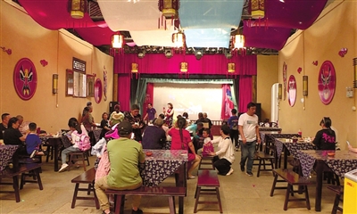 羊樓洞戲院游客們在茶館休息時,觀賞著臺上精彩的節目,時光也仿佛回到了那個充滿故事的年代。