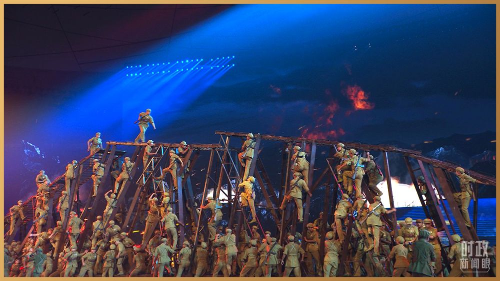 這場演出以大型情景史詩形式呈現,共分為“浴火前行”“風雨無阻”“激流勇進”“錦繡前程”四個篇章。中央舞臺的巨型屏幕,呈現流淌的史詩畫卷。情景合唱與舞蹈《戰旗美如畫》,還原抗美援朝的烽火歲月。合唱與舞蹈《行進的火炬》,重溫北京奧運會經典場景。