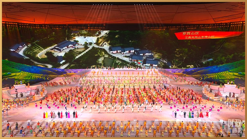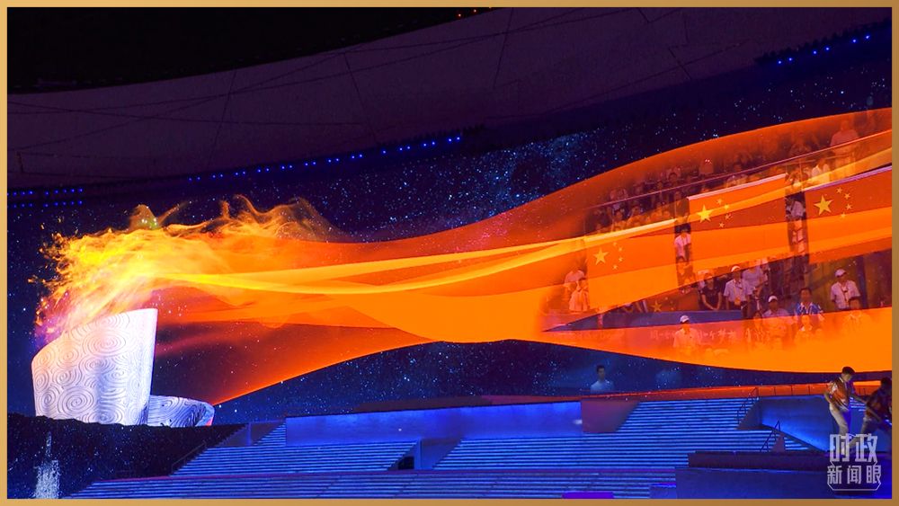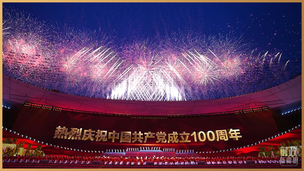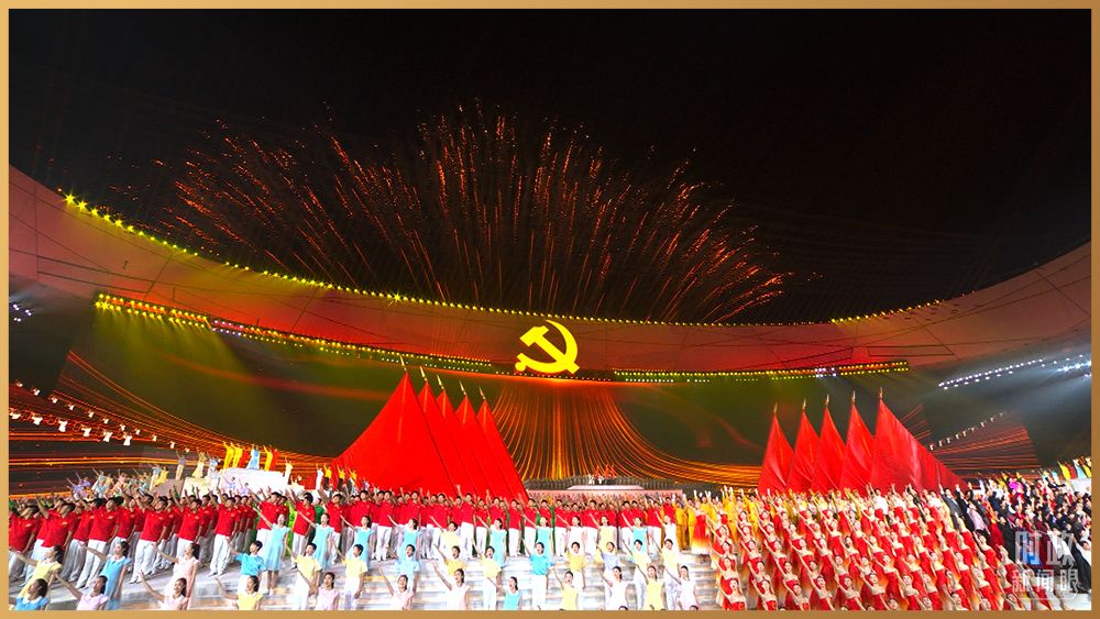 情景交響歌舞《人民至上》,再現舉國動員、全民戰“疫”。鼓樂歌舞節目《新的天地》,一百面空中大鼓與地面巨型大鼓遙相呼應。在主題曲《領航》的旋律中,高達16米的金色黨徽在國家體育場莊嚴升起。演出過程中,絢爛的焰火一次次盛放在國家體育場上空,并迅速在網上引發刷屏。