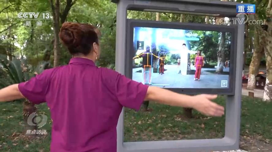 烏鎮(zhèn)人民公園是胡暉和舞蹈隊(duì)伙伴們經(jīng)常來的地方。去年公園實(shí)現(xiàn)了智慧化改造,廣泛應(yīng)用了5G、AI人臉識(shí)別、物聯(lián)網(wǎng)和智能化交互技術(shù),帶給胡暉她們高科技的驚喜。進(jìn)公園大門,通過AI管家可以了解當(dāng)天菜價(jià)。刷臉跑步,智慧路燈會(huì)為你加油。想練武術(shù)的,有AI武術(shù)大屏里的專業(yè)老師面對(duì)面教你。