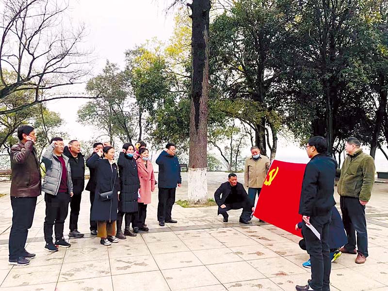 嘉魚縣政法委機(jī)關(guān)干部在烈士陵園重溫入黨誓詞